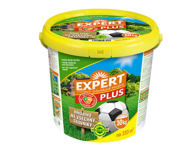EXPERT PLUS je granulované hnojivo na trávniky obsahujúce základné živiny dusík, fosfor, draslík vo vyváženom pomere. Súčasne obsahuje horčík v sírnej forme. Toto hnojivo je vhodné na hnojenie všetkých typov trávnikov, športových i okrasných. Obsiahnuté železo potláča výskyt machu v trávniku.