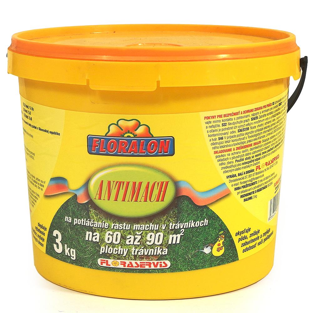 2. FLORALON – ANTIMACH obsahuje železo, síru a dusík v ich vzájomných pomeroch vhodných pre prihnojovanie trávnikov a inhibíciu rastu machu. Prípravok bol navrhnutý tak, aby popri prakticky okamžitom pôsobení účinných zložiek zabezpečoval tiež ich dlhodobejšie pôsobenie.