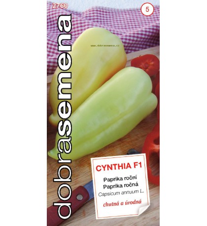 CYNTHIA F1 - výnosná a spolehlivá hybridní paprika. Plody jsou převislé, trojúhelníkovité, se třemi komorami a špičatým zakončením. Barva plodů v technologické zralosti je smetanově bílá, v botanické zralosti červená. Odrůda je určená zejména pro pěstování ve fóliovníku, v teplejších oblastech i ve volné půdě. Chutné plody jsou určeny pro přímý konzum i pro konzervování.