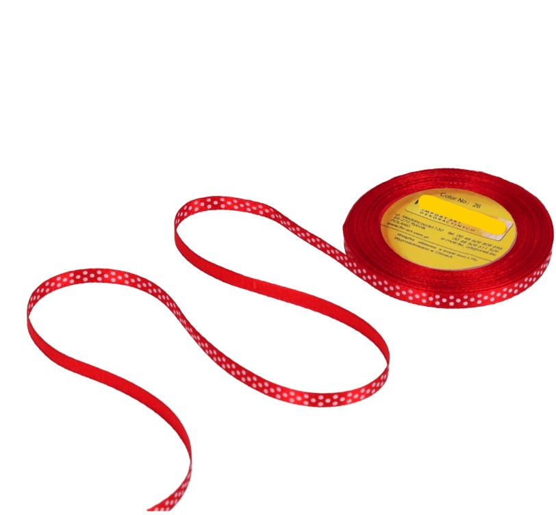 Stuha satén+bodky 0,6cm/25y červená 26