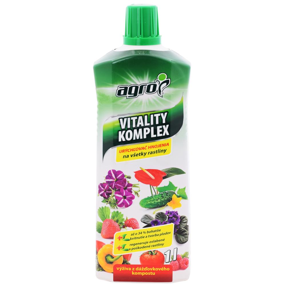 AGRO – VITALITY KOMPLEX podporuje rast rastlín, zvyšuje tvorbu kvetov a predlžuje kvitnutie okrasných rastlín. Pri plodovej zelenine a ovocí priaznivo ovplyvňuje veľkosť a chuť plodov, dokonca zvyšuje aj obsah vitamínu C. Všeobecne VITALITY KOMPLEX zvyšuje celkovú vitalitu rastlín, a tým aj ich odolnosť voči chorobám a škodcom. Je výborný na oživenie vzhľadu a rastu zanedbaných alebo inak poškodených rastlín. Takéto rastliny obnovia svoj pôvodný vzhľad a začnú prípadne vytvárať nové výhonky alebo listy.