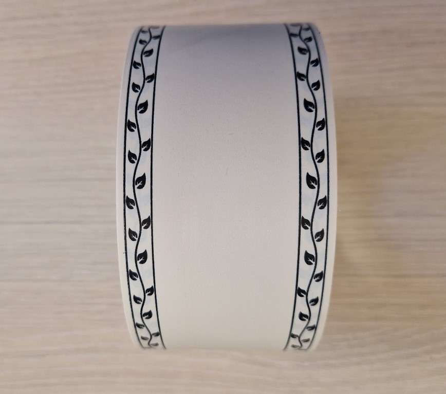 Stuha na písmo 6cm/50y Krémová + čierny vzor.okrajSkladom 5 bal6,90 €/ bal5,61 € bez DPH