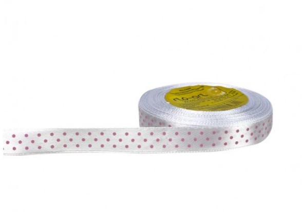 Stuha satén+bodky ružové 1,2cm/25y biela č.94Skladom 5 bal1,30 €/ bal1,06 € bez DPH